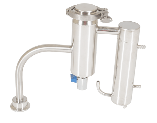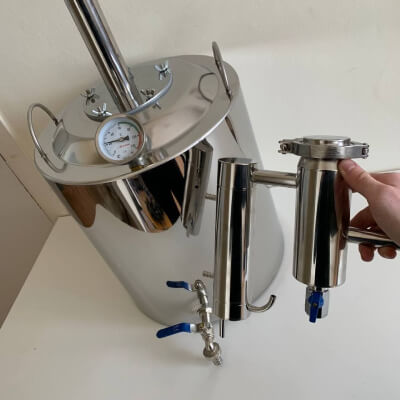 Заключительный этап очистки — сухопарник с краном для слива. На его стенках происходят повторная конденсация и переиспарения спирта. Одновременно с эффективной очисткой происходит и ароматизация напитка. (Попробуйте добавить в сухопарник цедру лимона или ароматные травы).